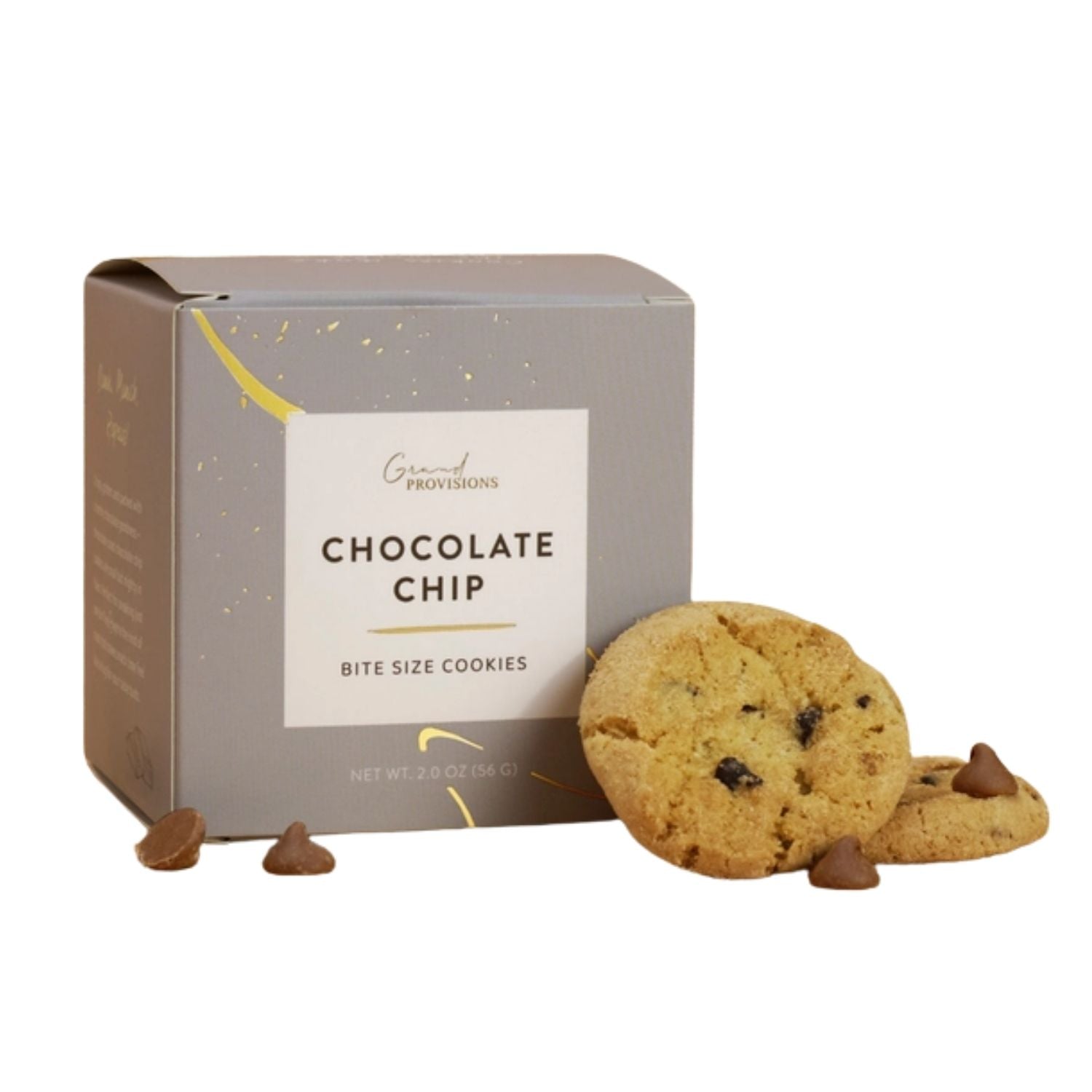2oz of bite-sized chocolate chip cookies that are crisp, golden, and packed with rich chocolatey goodness.